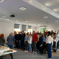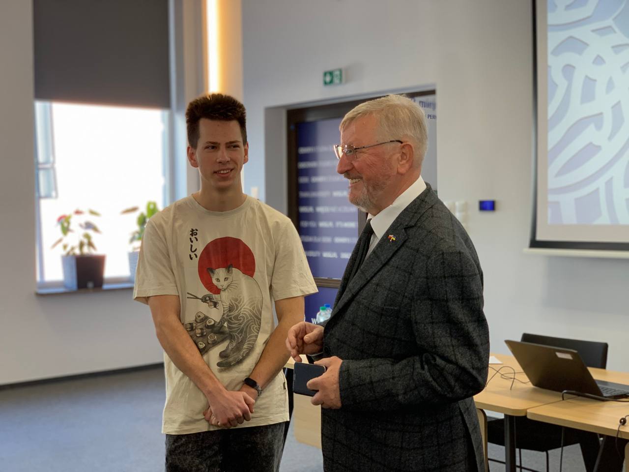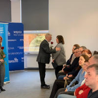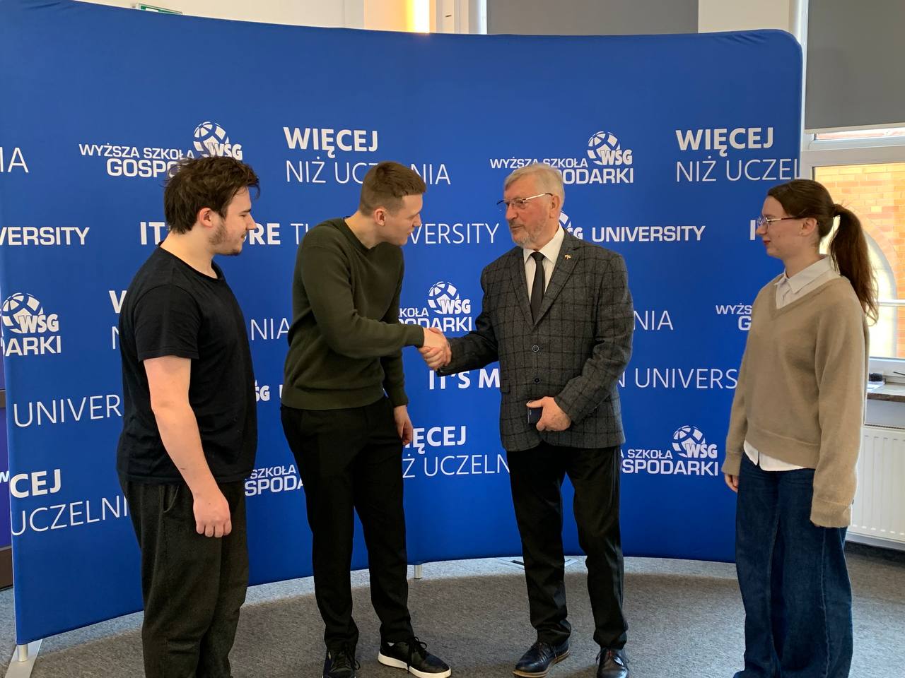 Na uroczystości obecni byli: Konsul Honorowy Krzysztof Sikora, rektor WSG prof. WSG dr Marek Chamot, prorektorka ds. międzynarodowych dr Magdalena Bergmann, dziekan Instytutu Europejskiego dr Switłana Kashuba, koordynatorzy IE i SSO – Olha Kopiika, Olha Alieksieienko i Anastasiia Sotina. W wydarzeniu uczestniczyli studenci pierwszego roku kierunków: zarządzanie, turystyka i rekreacja, przemysły kreatywne oraz informatyka. Uroczystość uświetniła delegacja Narodowego Uniwersytetu Pedagogicznego im. H.S. Skoworody w Charkowie na czele z dziekanem Wydziału Wychowania Fizycznego i Sportu, Vitaliiem Korobeinikiem, przebywająca na stażach w Instytucie Sportu WSG, pod opieką dr Aleksandra Skaliy.