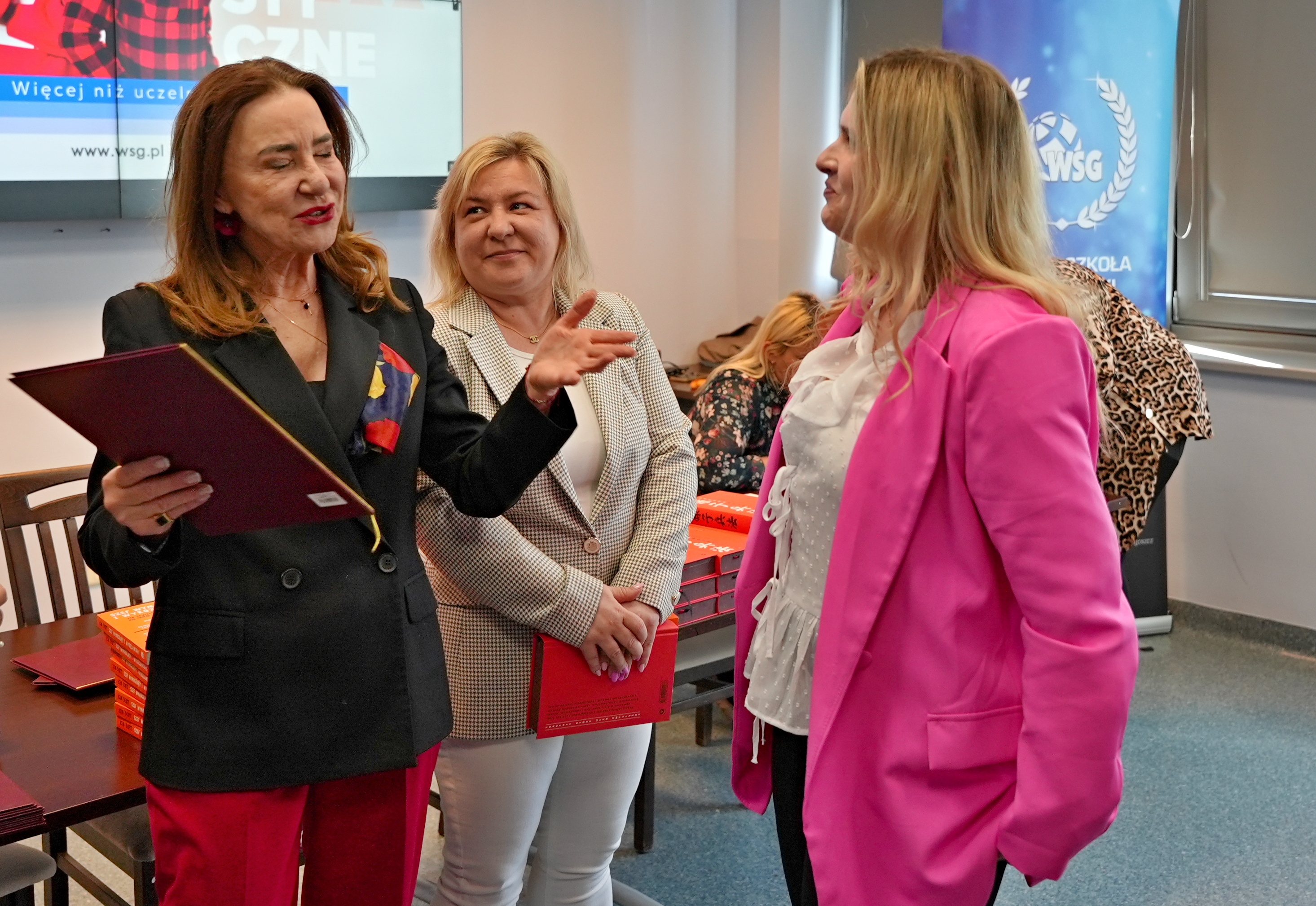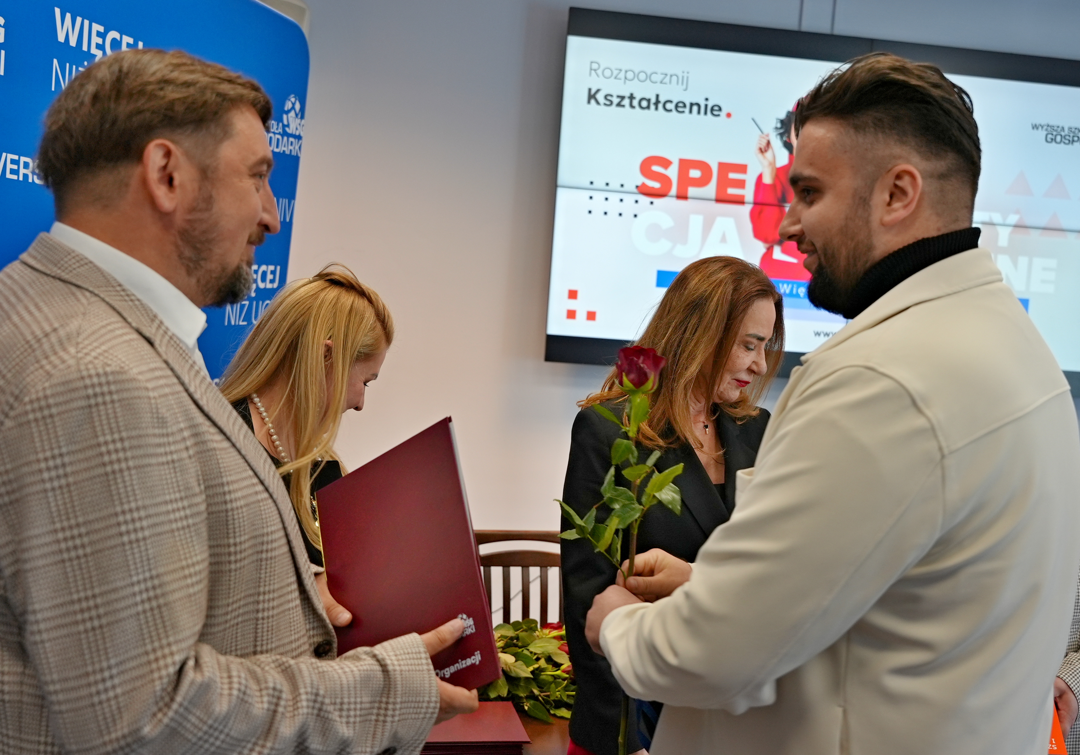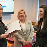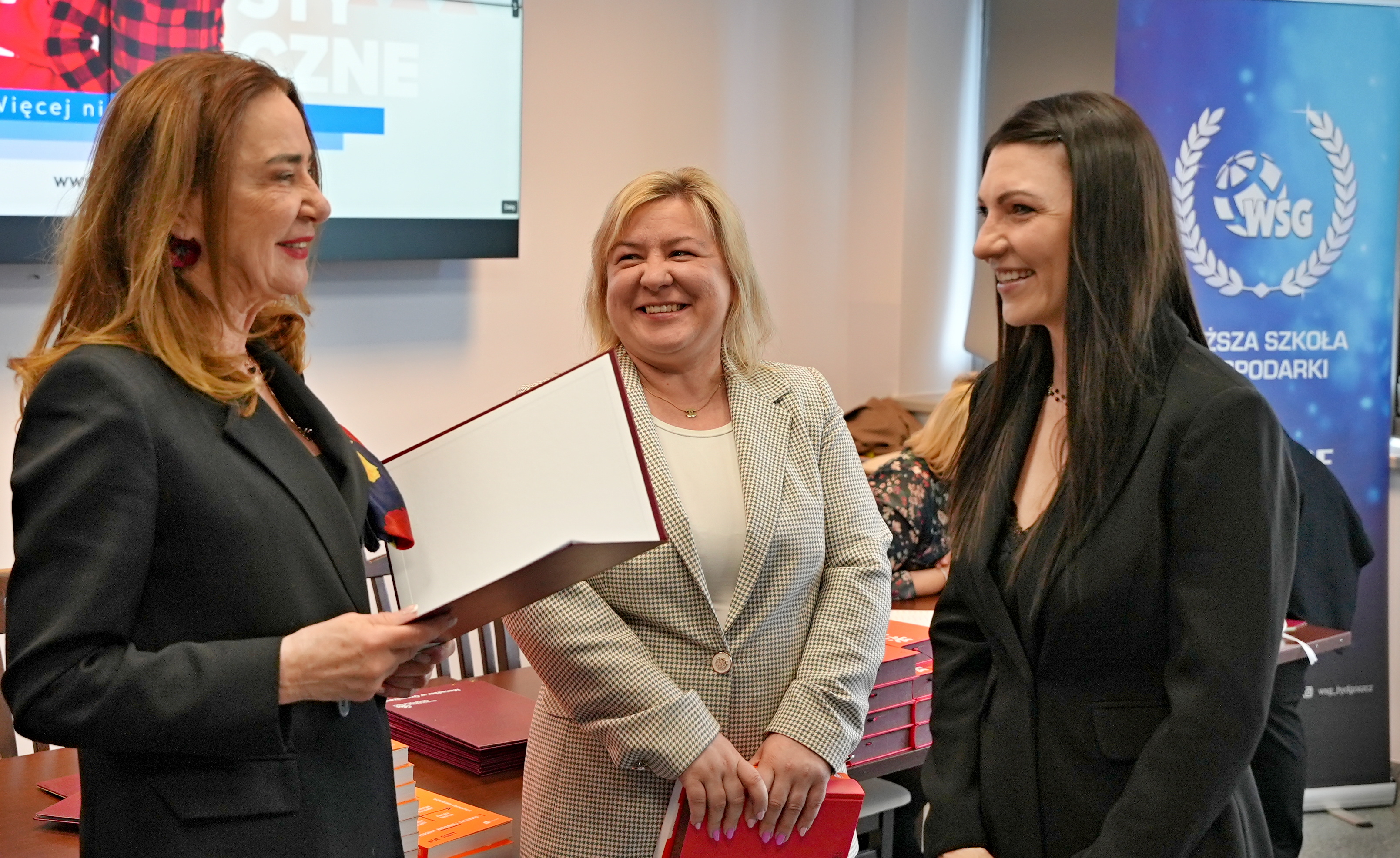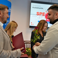 W uroczystości wzięli udział przedstawiciele władz Uczelni: Kanclerz WSG doc. Filip Sikora, Prorektorka ds. Rozwoju i Filii doc. inż. Agnieszka Walczak-Beszczynska oraz Dziekan Kolegium Nauk Społecznych prof. WSG dr Grażyna Sipińska. W swoim wystąpieniu Kanclerz podkreślił szczególne znaczenie kształcenia na poziomie PRK 5, zwracając uwagę, że jest to obszar wciąż zbyt słabo rozpropagowany w Polsce, a jednocześnie niezwykle istotny z punktu widzenia rynku pracy i rozwoju kompetencji zawodowych.Dziekan Kolegium Nauk Społecznych prof. WSG dr Grażyna Sipińska podzieliła się refleksjami na temat współpracy ze słuchaczami, podkreślając, że spotkania w trakcie kształcenia były dla niej bardzo inspirujące i stanowiły cenne źródło wymiany doświadczeń.